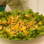 - Salada de folhas e romã com nozes caramelizadas e molho funcional;